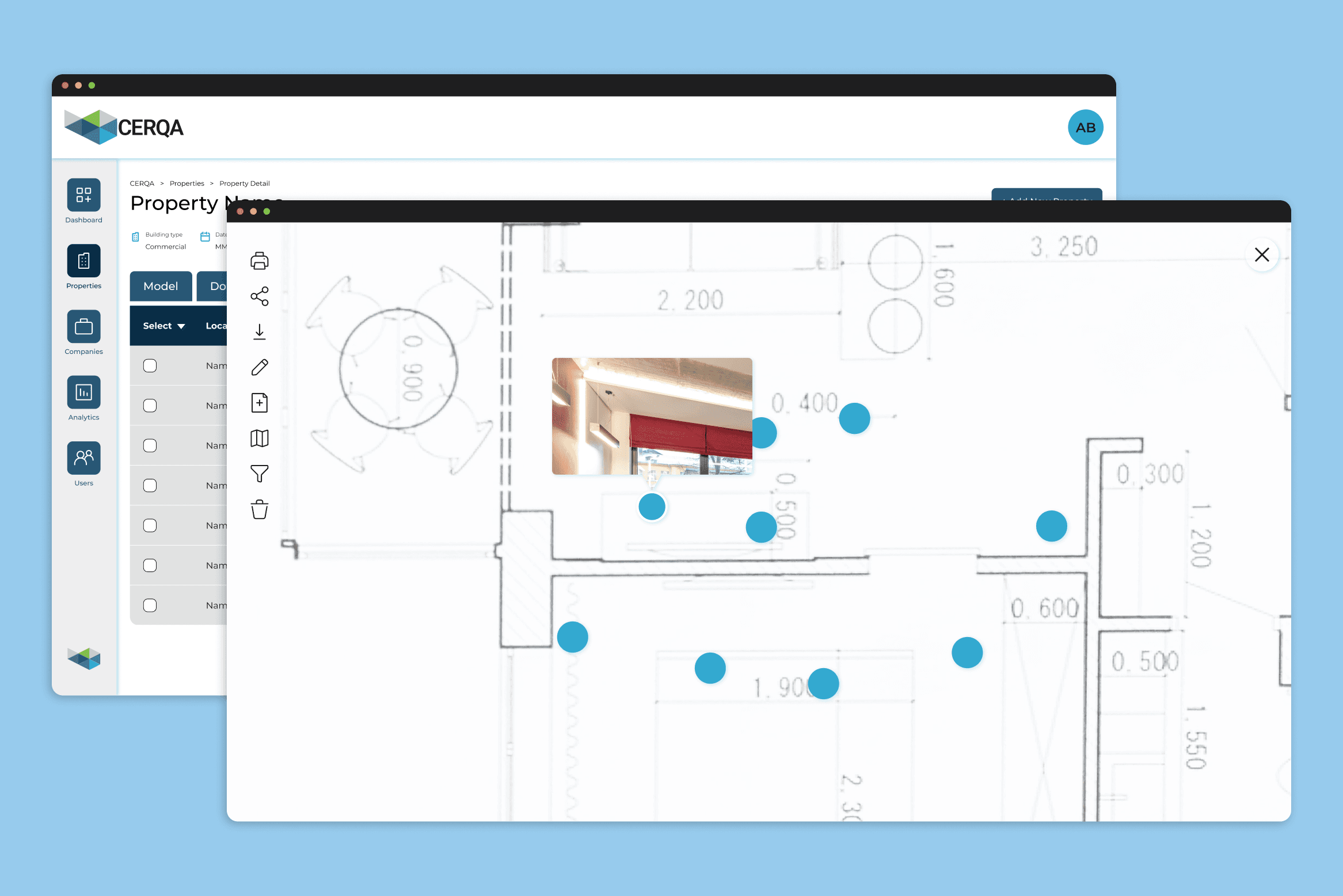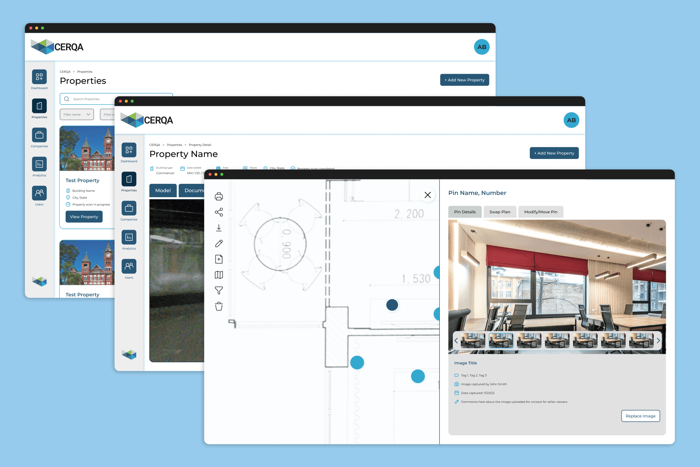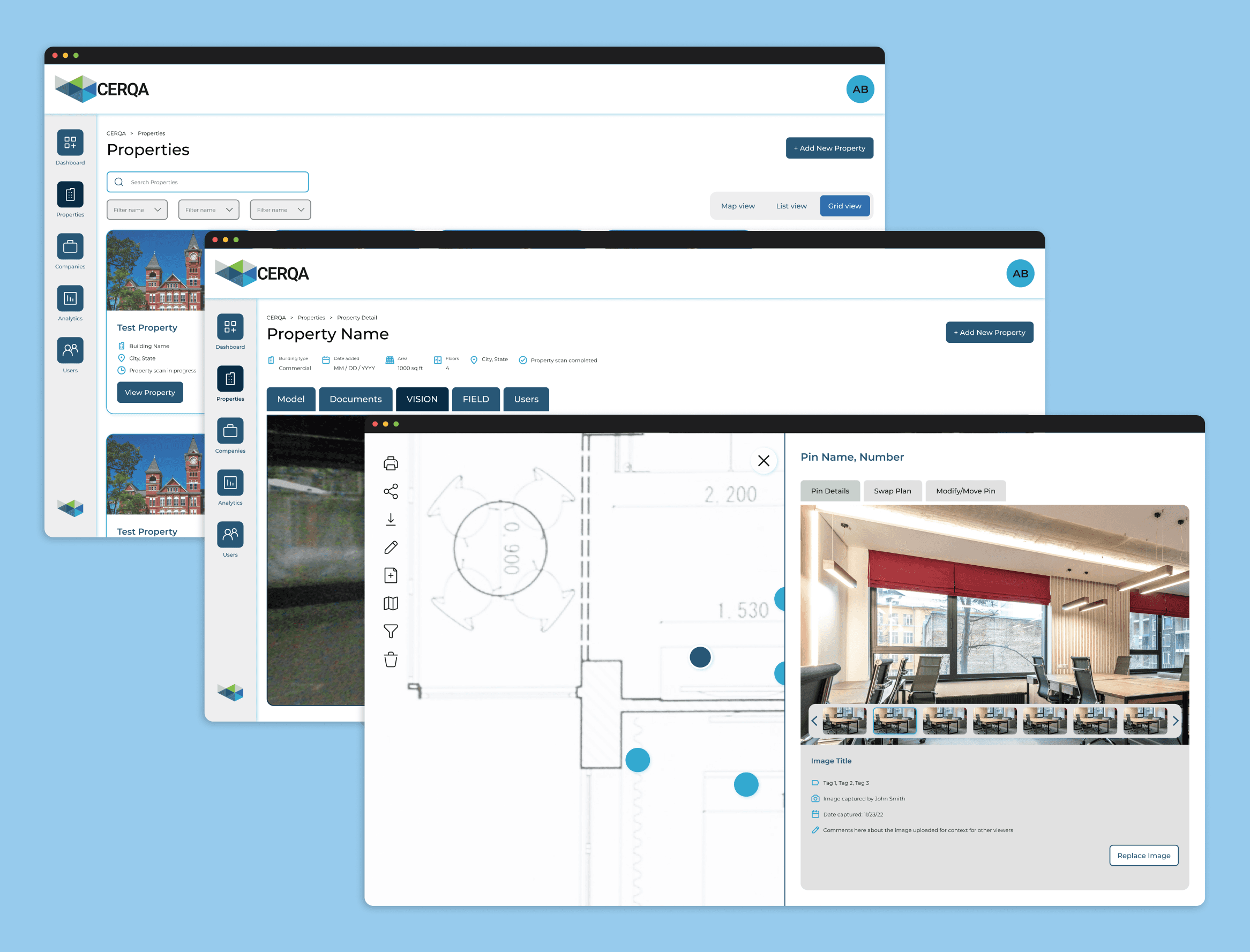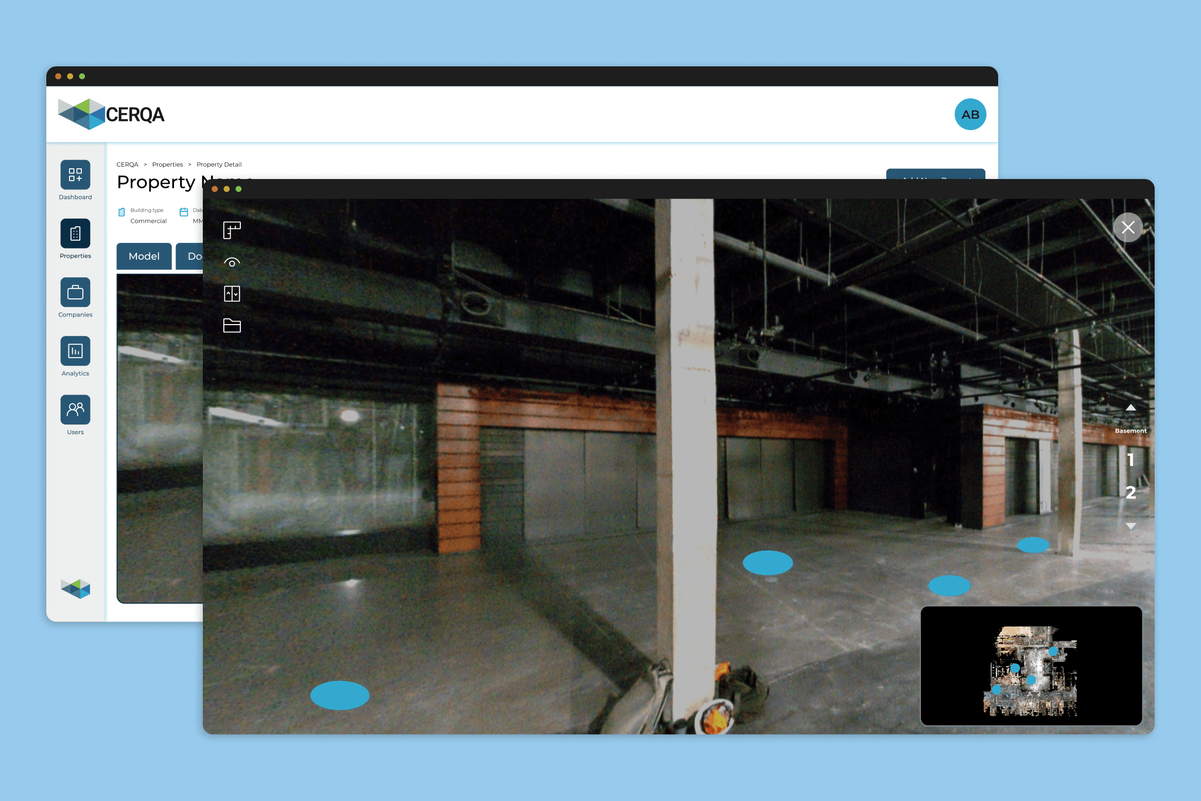 CERQA is a cloud platform by BIMstream that centralizes digital twins, 360 imagery, and building documentation into one location for property owners and portfolio managers.